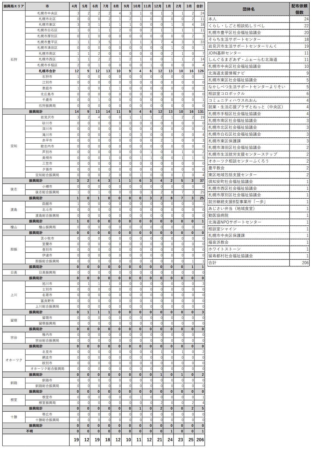 様に北海道庁を通じて、道内の福祉事務所設置自治体、生活困窮者自立相談支援機関(受
